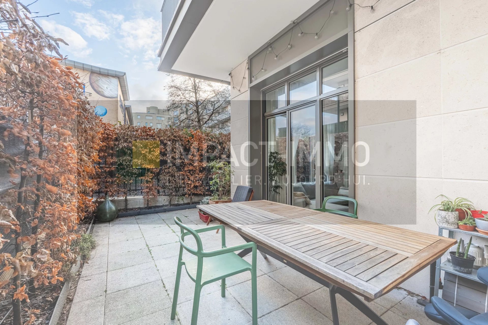 L'agence Impact Immo vous propose ce magnifique appartement en rez-de-jardin, idéalement agencé avec une pièce de vie donnant sur un grand terrasse exposée sud, une cuisine ouverte aménagée et équipée (four, plaques, hotte, réfrigérateur-congélateur).