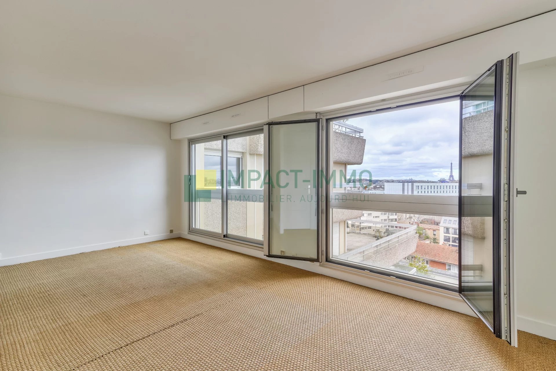 Reine Mairie - A vendre à BOULOGNE-BILLANCOURT, à 8mn (550m) des lignes du métro 9 (Marcel Sembat) et 10 (Jean Jaurès), à proximité immédiate des commerces et des écoles, dans une copropriété arborée aux parties communes rénovées, votre agence Impact Immo vous propose en exclusivité cet appartement trois pièces de 68,38m² situé au 10éme étage et bénéficiant d'une vue imprenable sur PARIS.