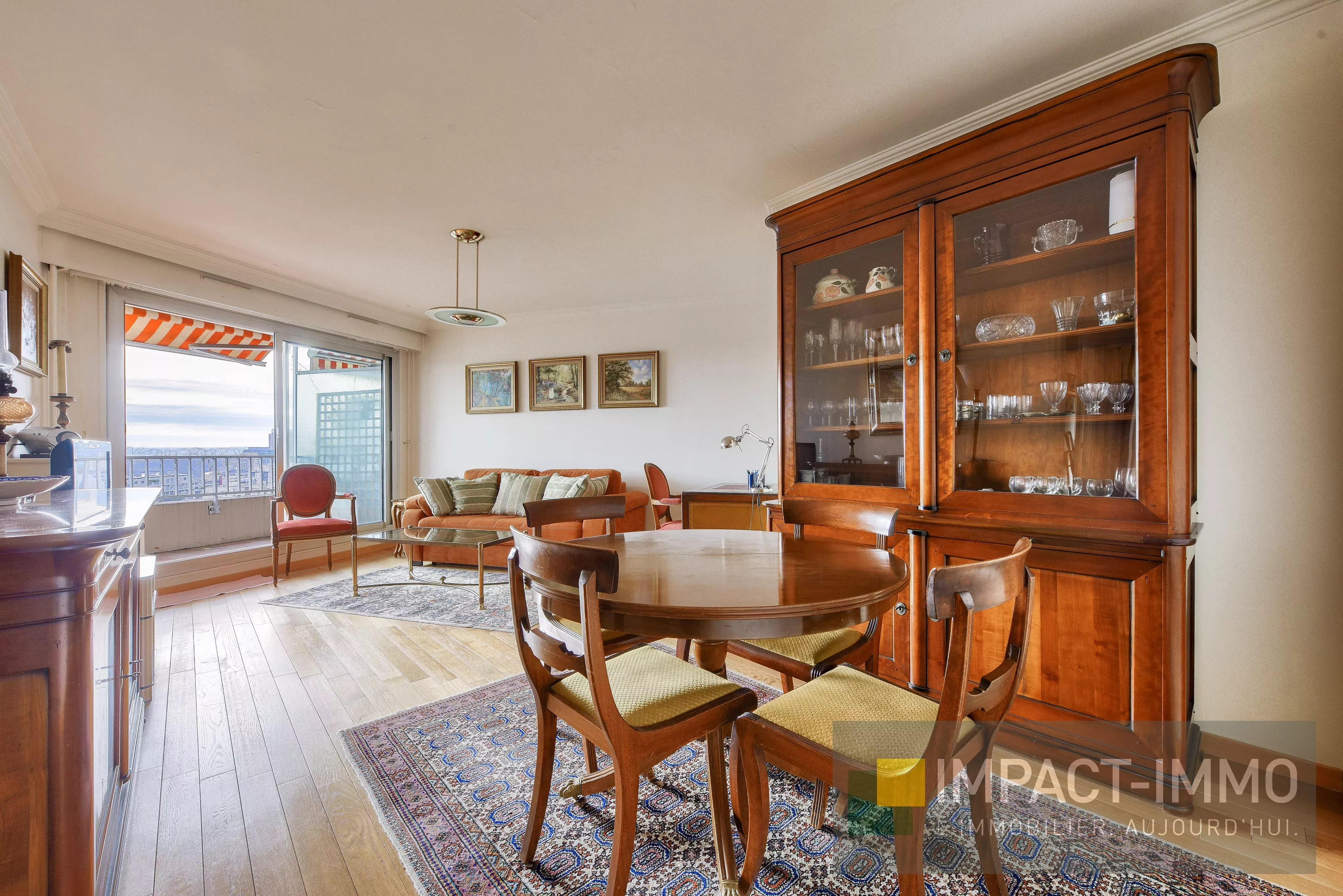L'appartement est très lumineux, bien agencé et sans aucune pertes d'espaces. La vue est panoramique sur la tour Eiffel et tout Paris.